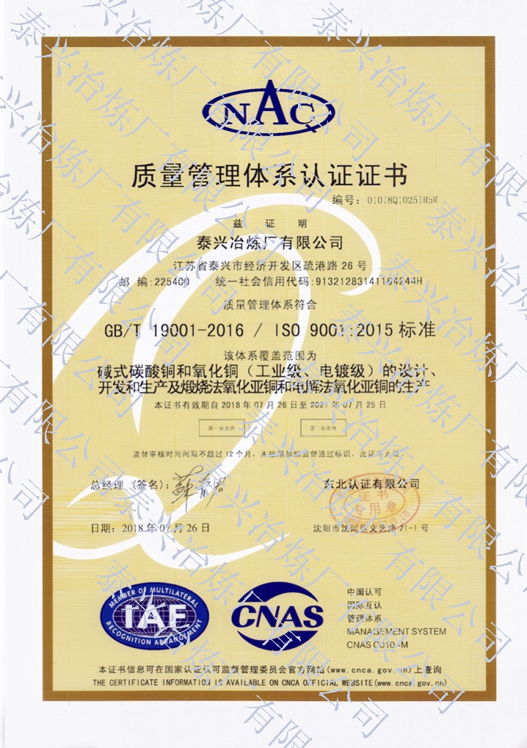 是我國(guó)《工業(yè)氧化亞銅》、《工業(yè)堿式碳酸銅》、《工業(yè)活性氧化銅》行業(yè)標(biāo)準(zhǔn)的起草單位